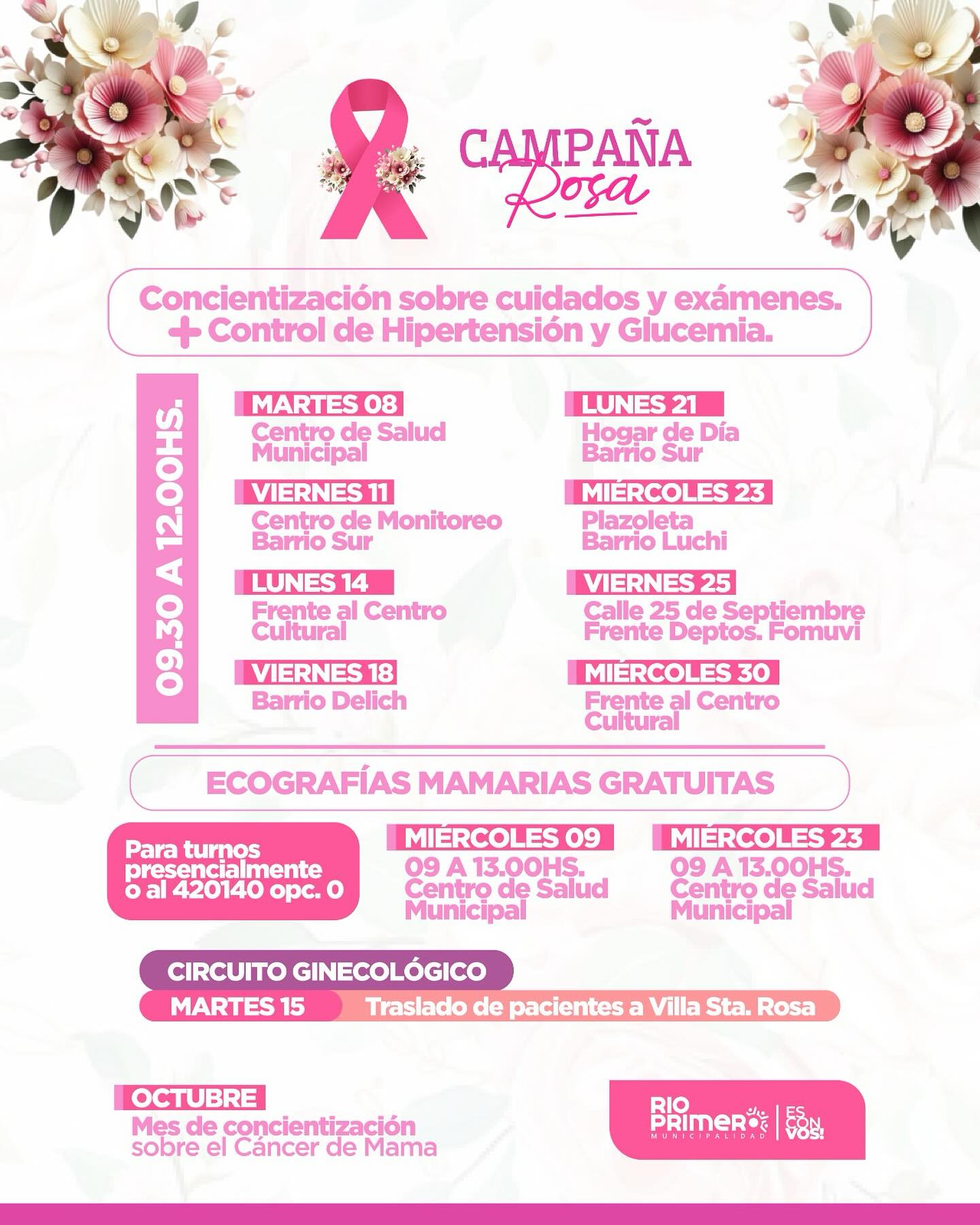 Articulando con la Secretaria de Desarrollo Económico, quienes desplegaron un hermoso Paseo de Emprendedores. La Dirección de Salud quiénes organizaron una acción preventiva en el mes de lucha contra el Cáncer de mamá y desde el Área Social y de Discapacidad, quienes participaron en la caminata con adultos activos junto al grupo sueños de vida!