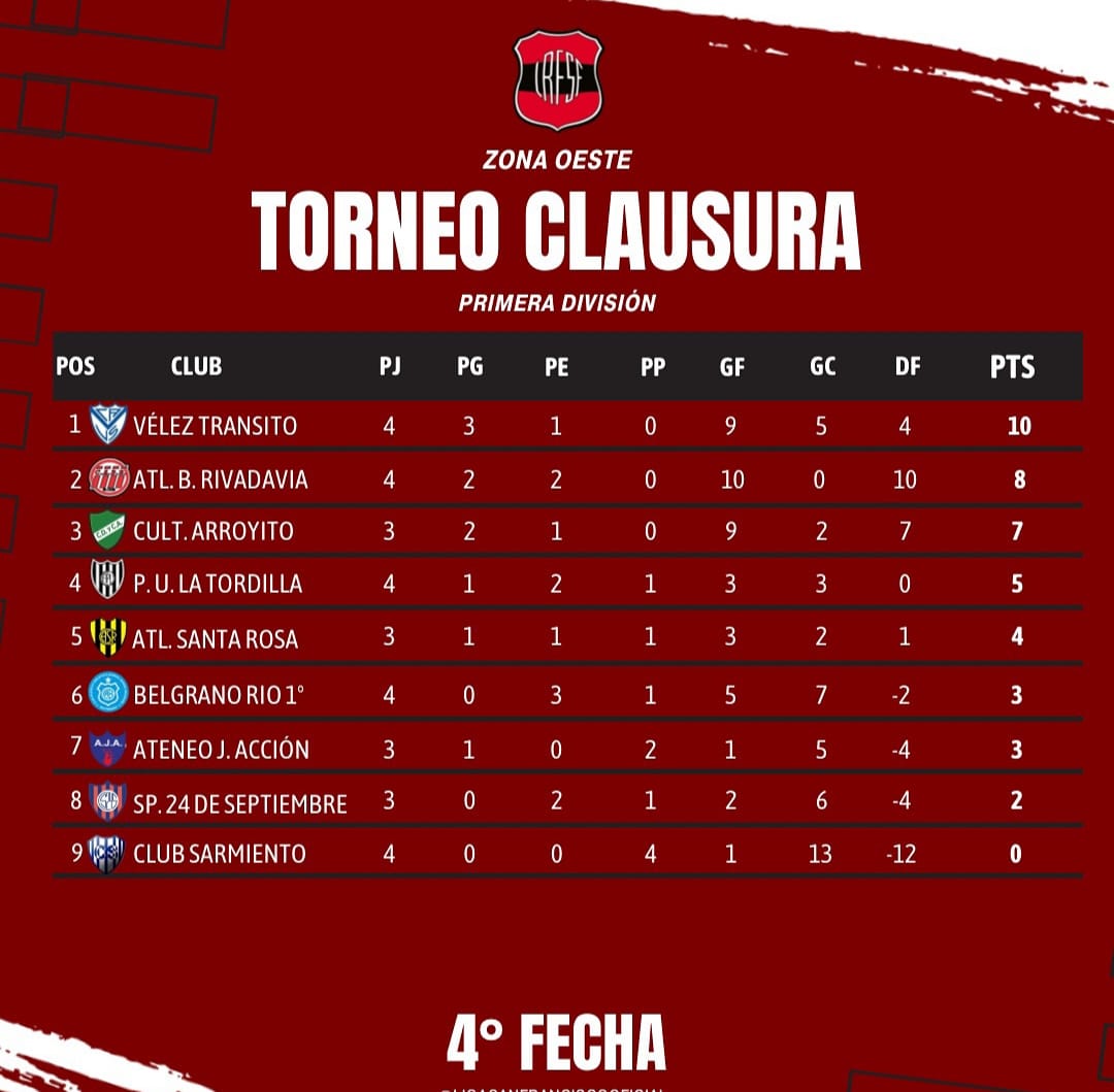 Tabla de posiciones 4 fecha Torneo Clausura .